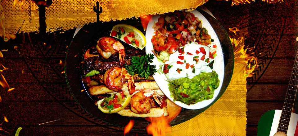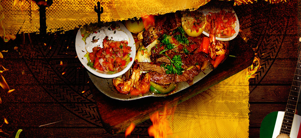 Restaurant Menu:chicken fajitas, steak fajitas, shrimp fajitas, specialty cocktails, custom margaritas, premium tequila